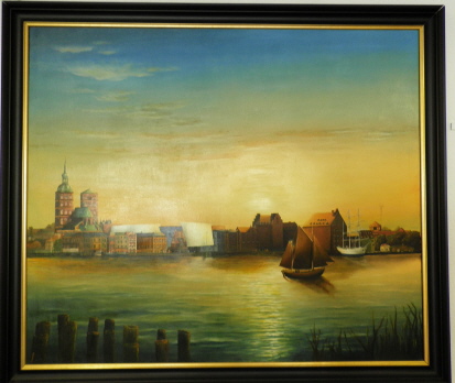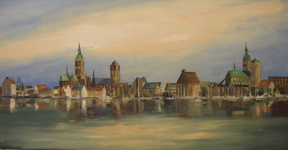 Titel: Stralsunddämmerung Bildmaß: 120X140 cm Öl auf Leinwand / Keilrahmen Künstler: Ralf Borschke Preis: 2800,00 €